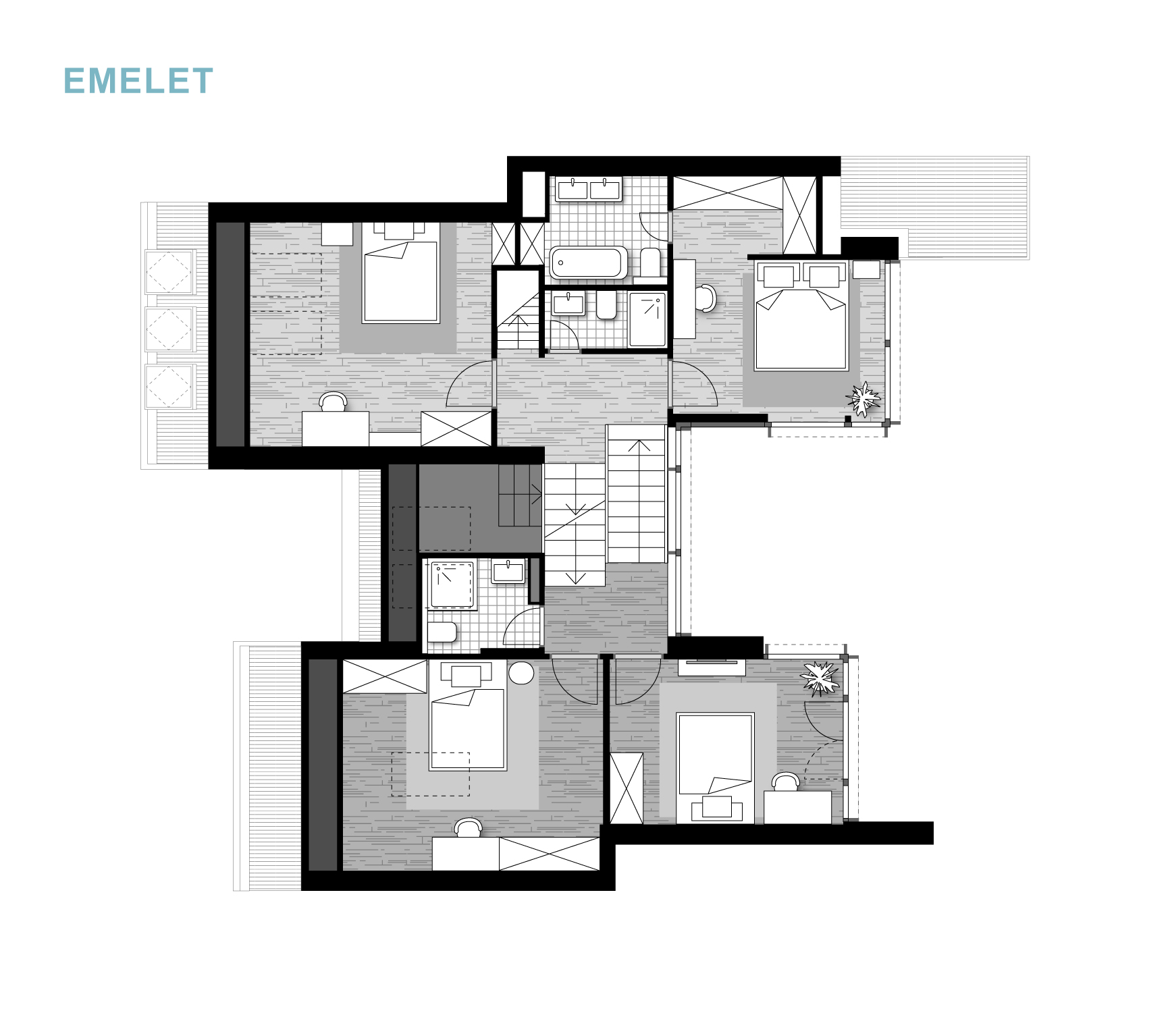 A belső elrendezés szabadon variálható, lehetőség van három, négy, öt vagy akár hat hálószoba kialakítására is.