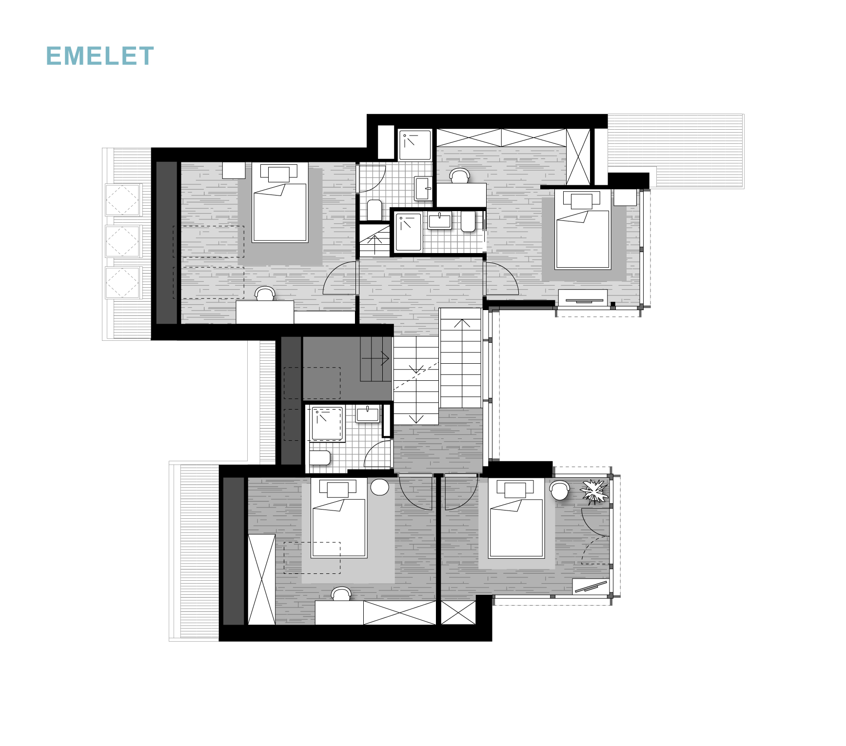 A belső elrendezés szabadon variálható, lehetőség van három, négy, öt vagy akár hat hálószoba kialakítására is.
